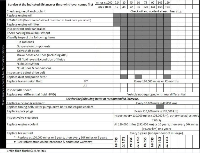 2001 - 2002 4cyl Accord Maintenance Schedule