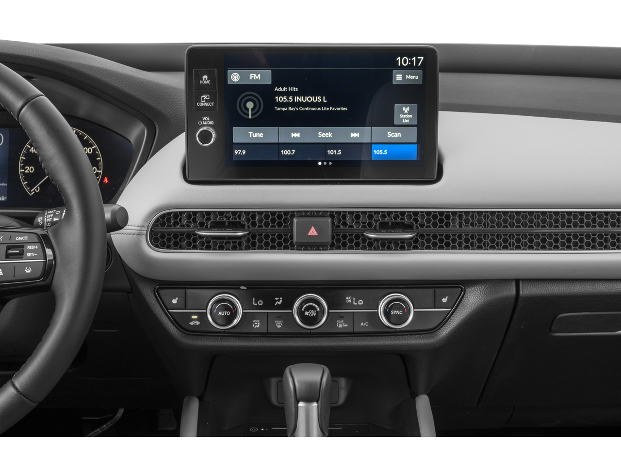 • Radio: 180-Watt Audio System w/8 Speakers -inc: 9" color touchscreen, wireless Apple CarPlay and Android Auto compatibility, Bluetooth® HandsFreeLink and streaming audio, 3.0A USB-C data/charging port in front console, Qi wireless phone charger, HondaLink (select HondaLink features are complimentary, Check vehicle compatibility at https://mygarage.Honda.com/s/Hondalink-product-compatibility) and Speed-Sensitive Volume Compensation (SVC)