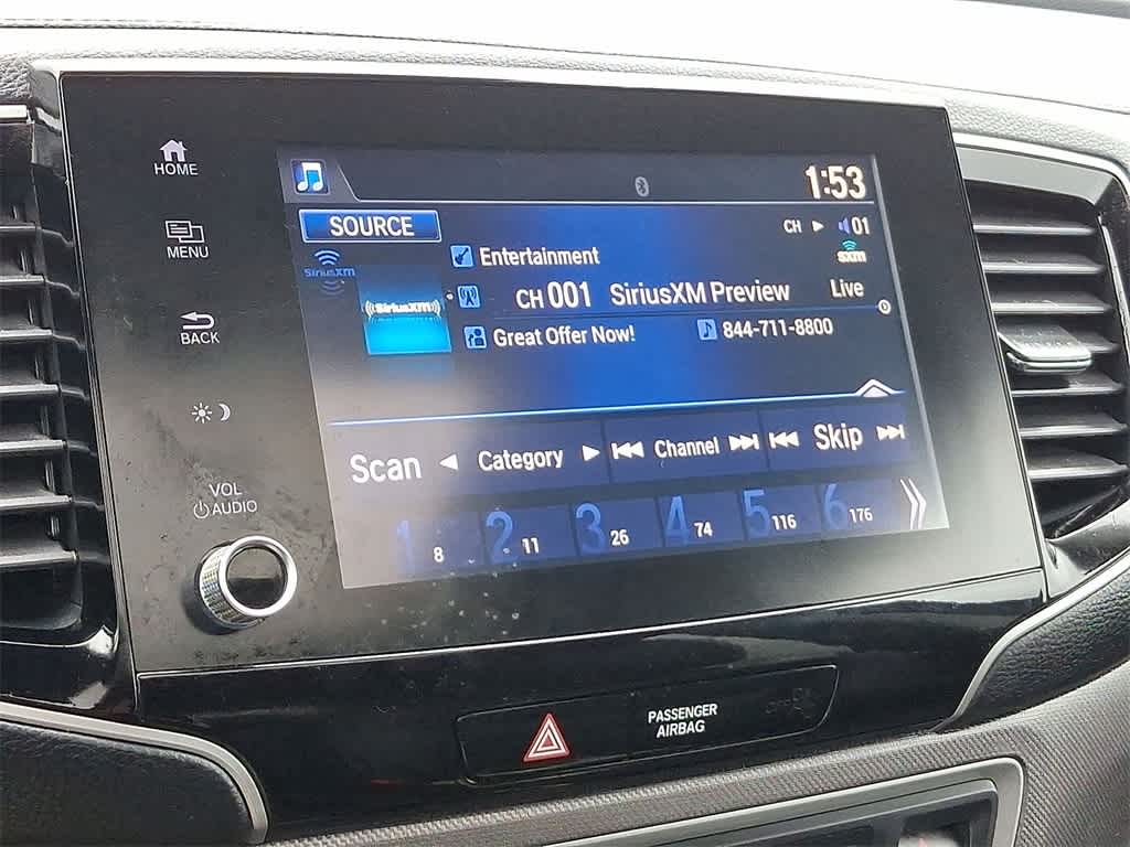 - Radio: 215-Watt Audio System w/7 Speakers -inc: subwoofer, Bluetooth® streaming audio, MP3/auxiliary input jack, Radio Data System (RDS), Speed-Sensitive Volume Compensation (SVC), 8" display audio w/high-resolution electrostatic touch screen and customizable feature settings, Apple CarPlay compatibility, Android Auto compatibility, HondaLink, SMS text message function (Compatible w/select phones w/Bluetooth®, Your wireless carrier's rate plans apply, State or local laws may limit use of texting feature, Only use texting feature when conditions allow you to do so safely.) and 1.5-amp USB smartphone/audio interface in front console (1 port)